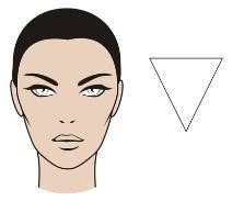 Frente estrecha, pómulos poco pronunciados, y mentón ancho. Haremos destacar los ojos, sobre todo, llevando gafas más anchas en la parte inferior o cuyo diseño acentúe esa parte, colores suaves, diseños de montura estrecha, con poco material, redondeadas y estrechas, las varillas que anclen al frente en la parte inferior si es posible.